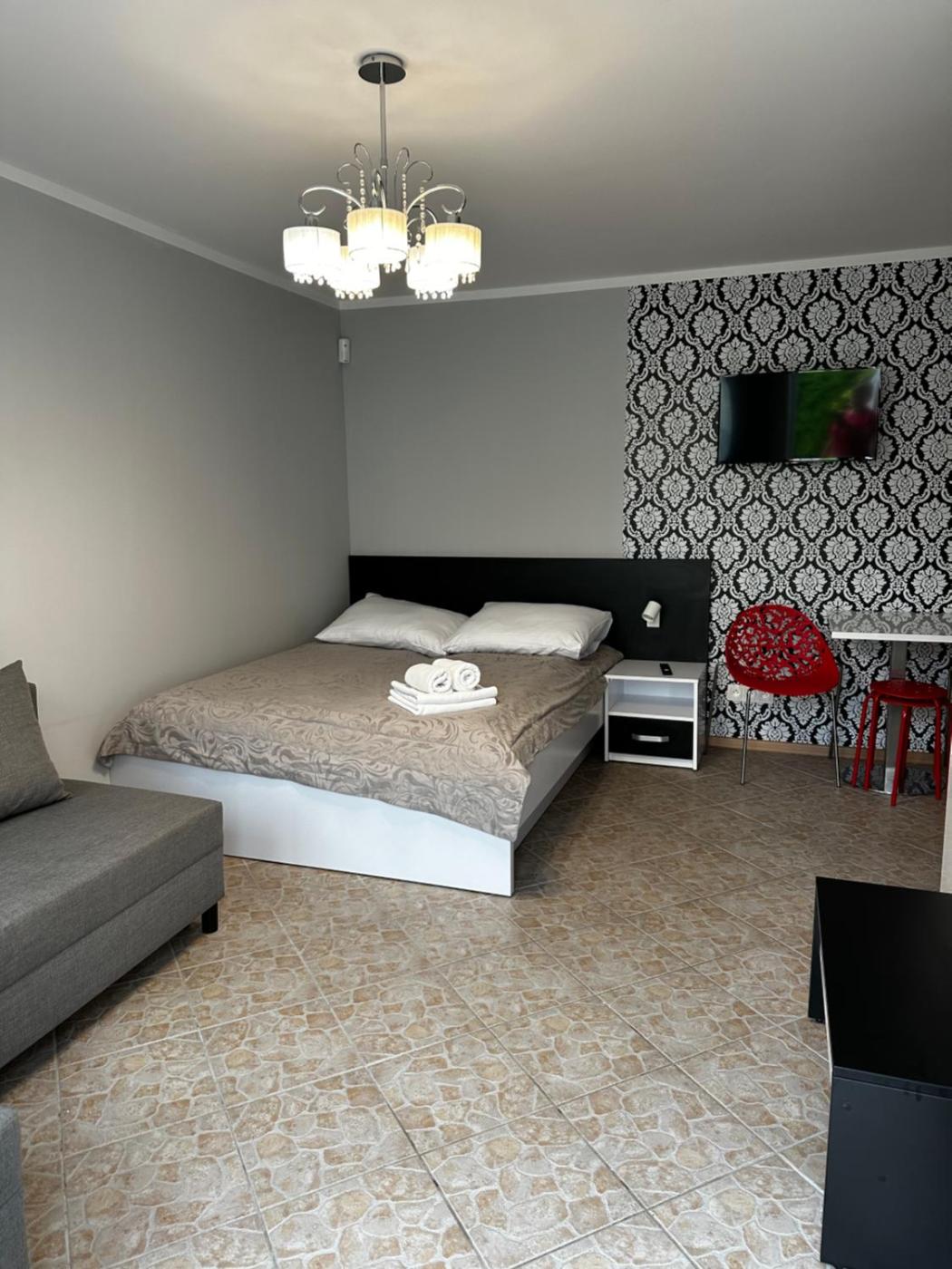Pokój Czteroosobowy z balkonem. Guests will find a stovetop, a refrigerator and an electric kettle in the kitchenette. The quadruple room also includes a barbecue. The quadruple room features air conditioning, a wardrobe, a balcony with a quiet street view as well as a private bathroom boasting a walk-in shower. The unit has 2 beds. Pokój Czteroosobowy - 4 osobowy. Powierzchnia pokoju ok.: 19 mkw. ;