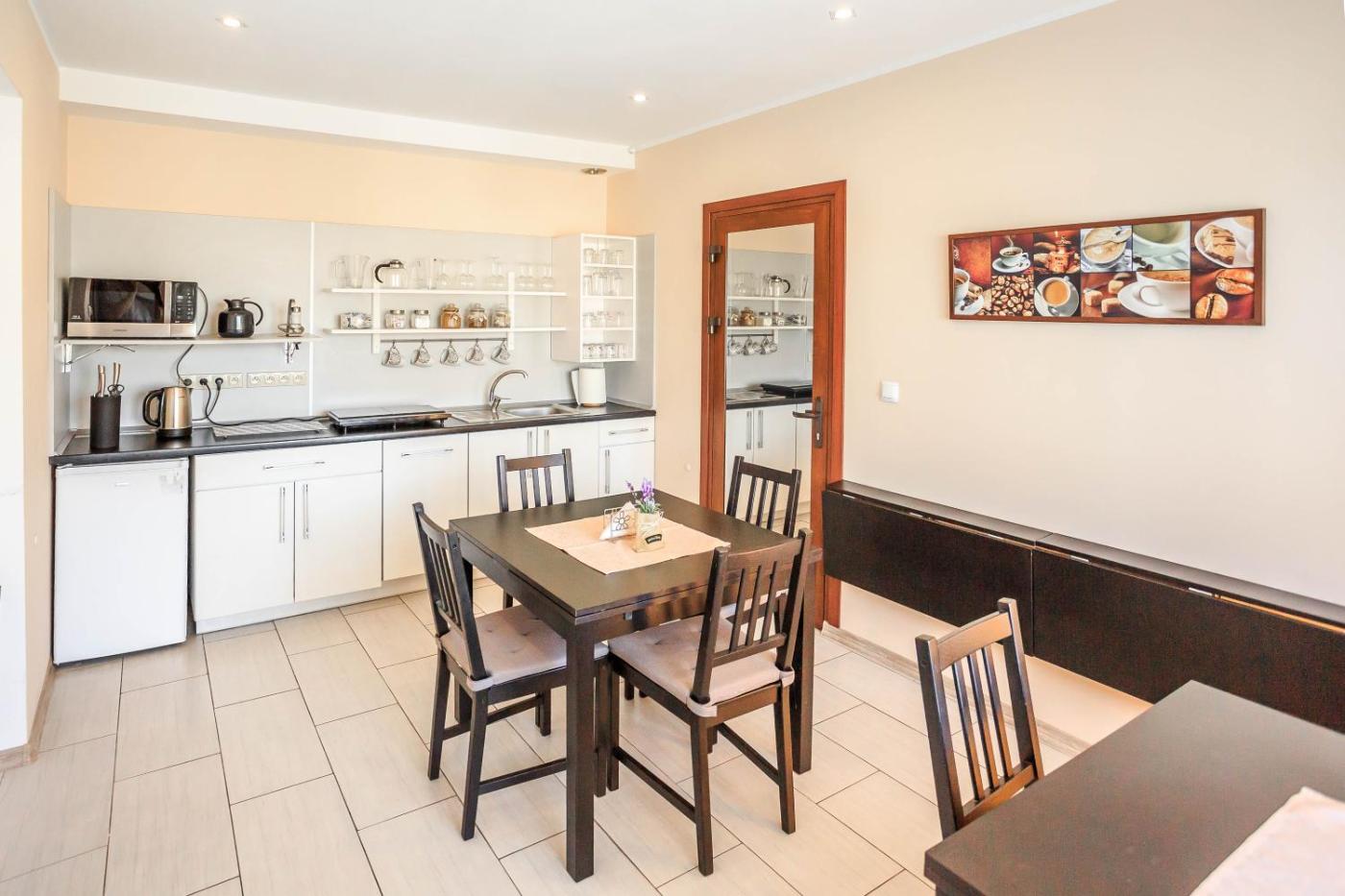 Apartament z 1 sypialnią – Aneks. Jest to apartament z aneksem kuchennym. Apartament - 2 osobowy. Powierzchnia pokoju ok.: 20 mkw.