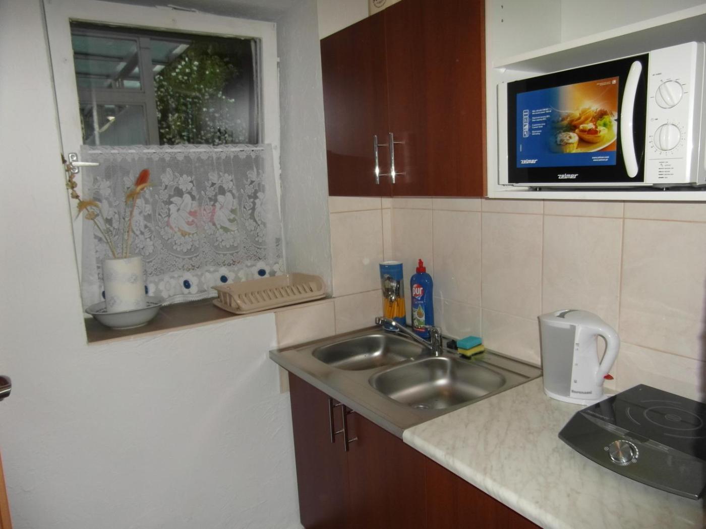 W niektórych opcjach zakwaterowania zapewniono także kuchnię z lodówką, piekarnikiem i mikrofalówką.