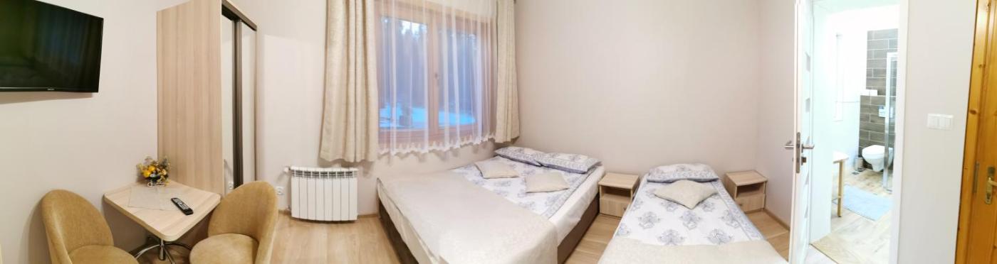 Pokój Trzyosobowy typu Comfort z prysznicem. The triple room provides a private entrance and a wardrobe, as well as a private bathroom featuring a shower. This triple room offers heating and a TV. The unit offers 2 beds. Pokój Trzyosobowy - 3 osobowy. Powierzchnia pokoju ok.: 1 mkw. ;